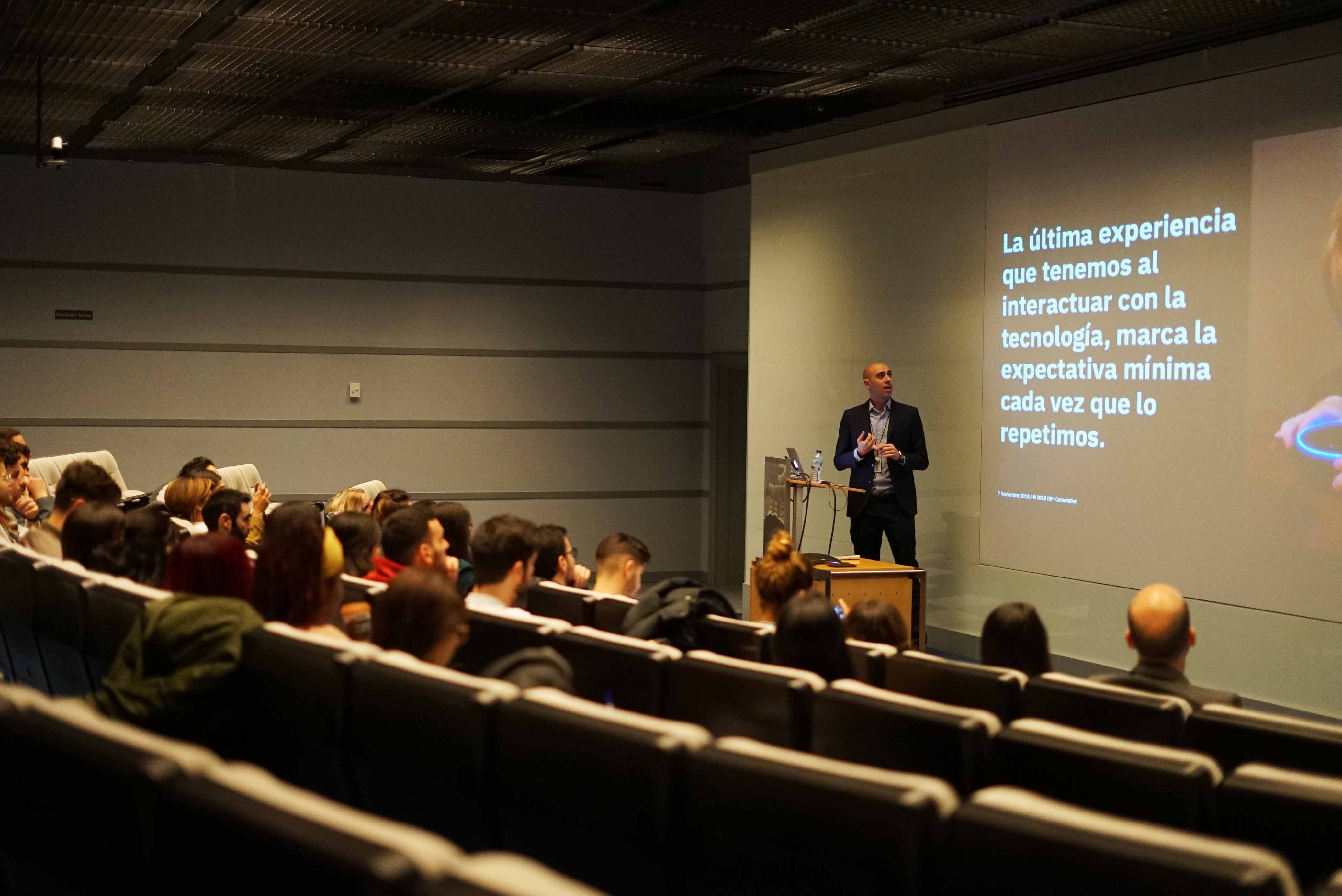 Acercándose al final del ciclo de conferencias José Fernando García, University Programmes Spain Leader IBM, explico a los estudiantes de EUDE los programas y las posibilidades de realizar prácticas dentro de la multinacional tecnológica, una oportunidad importante para completar la formación que se imparte en las aulas. Finalmente, el broche de oro lo puso Arturo Guerrero, Customer Experience Analytics Technical Presales de IBM, quien un año más organizó junto a Carlos Viera, esta visita enriquecedora para los alumnos de Marketing Digital.