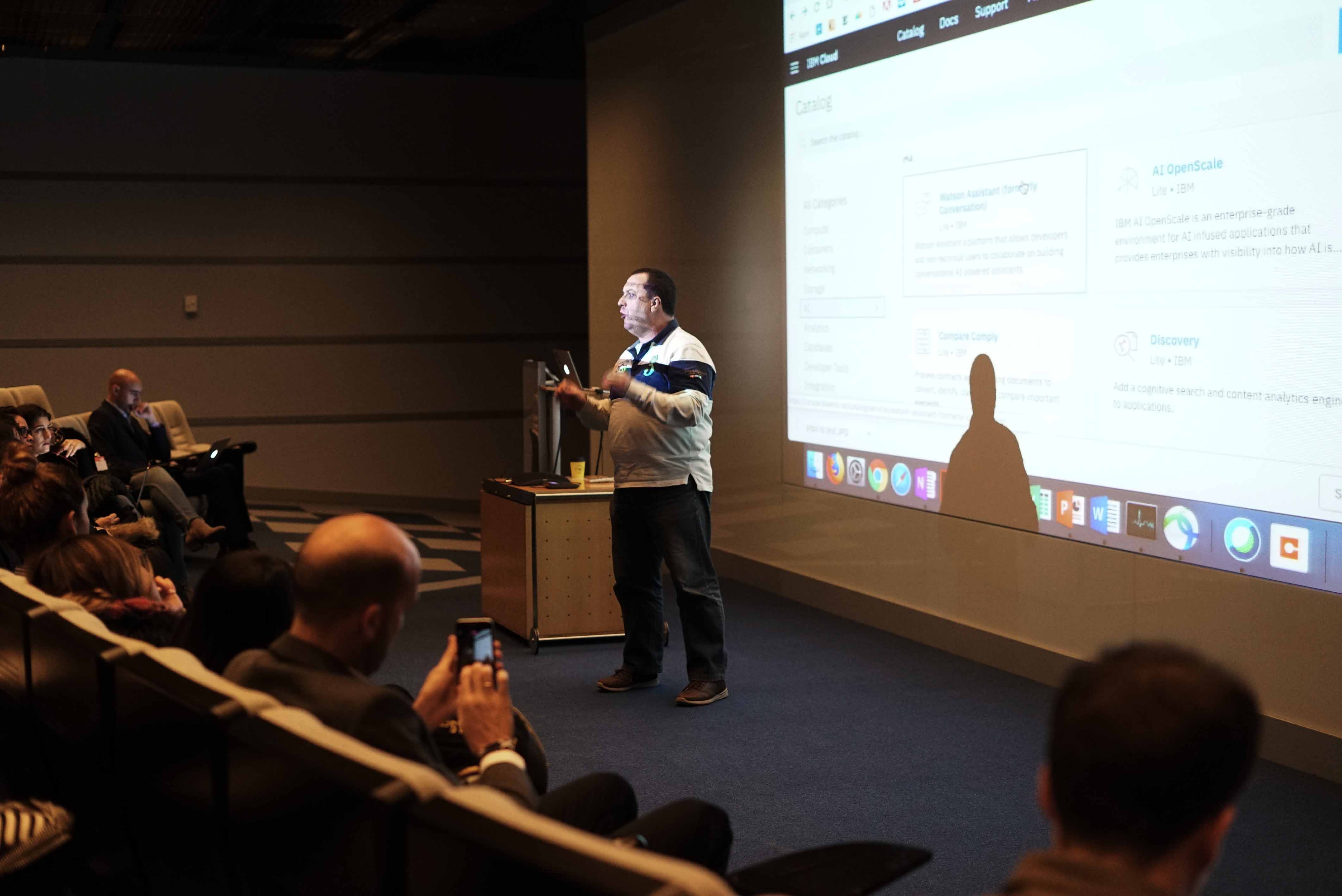 Posteriormente Manuel Rodríguez, experto en ingeniería y arquitectura, presento la herramienta IBM cloud, un servicio que ofrece a las empresas la tecnología de la información IBM. Principalmente se centró en los proyectos de agricultura y subrayó la importancia de trabajar de manera continuada en la inteligencia artificial “uno de los problemas que tiene la inteligencia artificial es que si no se entrena y trabaja bien tiene mucho sesgo”.